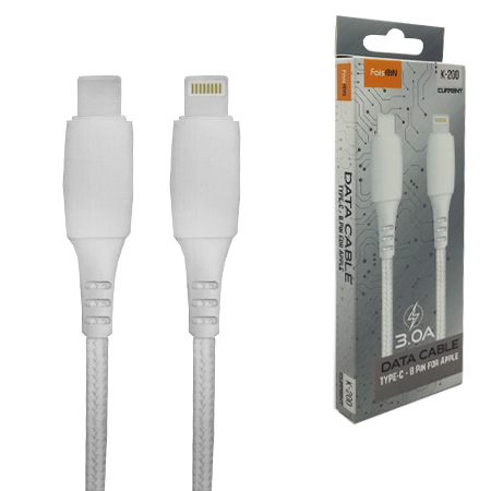 Кабель сетевой Type-C - Lightning " FaisON " K-200 Current белый, круглый, 1м, 3,0А, PD 18W, нейлон