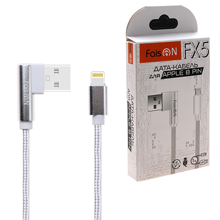 Кабель сетевой USB - Lightning " FaisON " FX5 Turn белый, боковой, круглый, 1м, 2,1А, ткань