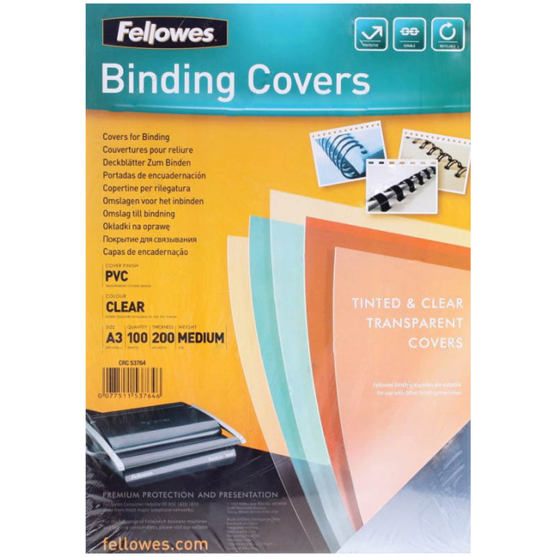Обложка А3 Fellowes FS-53764 "Transparent" 200мкм, прозрачный пластик, 100л.