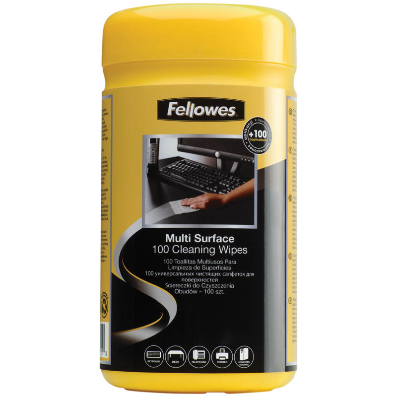 Салфетки чистящие влажные Fellowes FS-99715, универсальные, в тубе, 100шт.