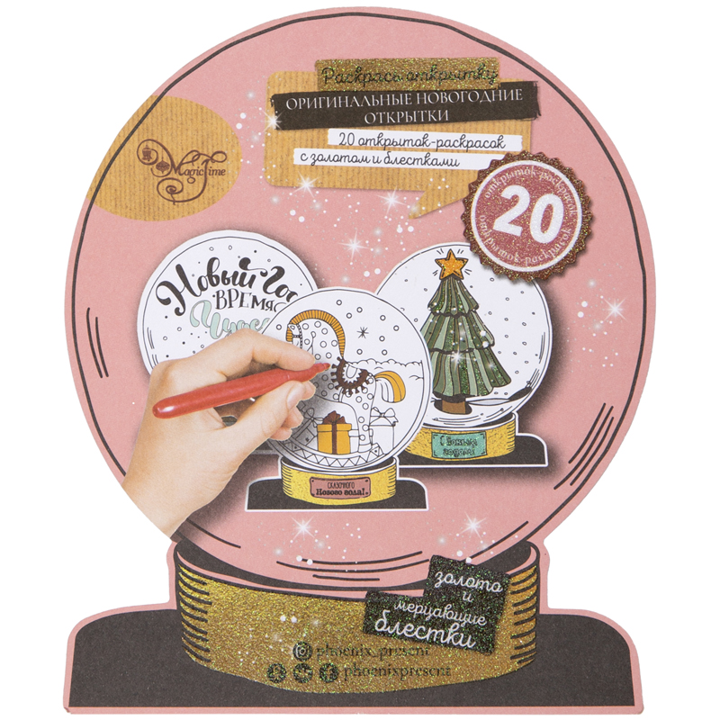 Новогодний альбом раскрасок-открыток (20шт.) "Снежный шар", картон, 13,5*16см