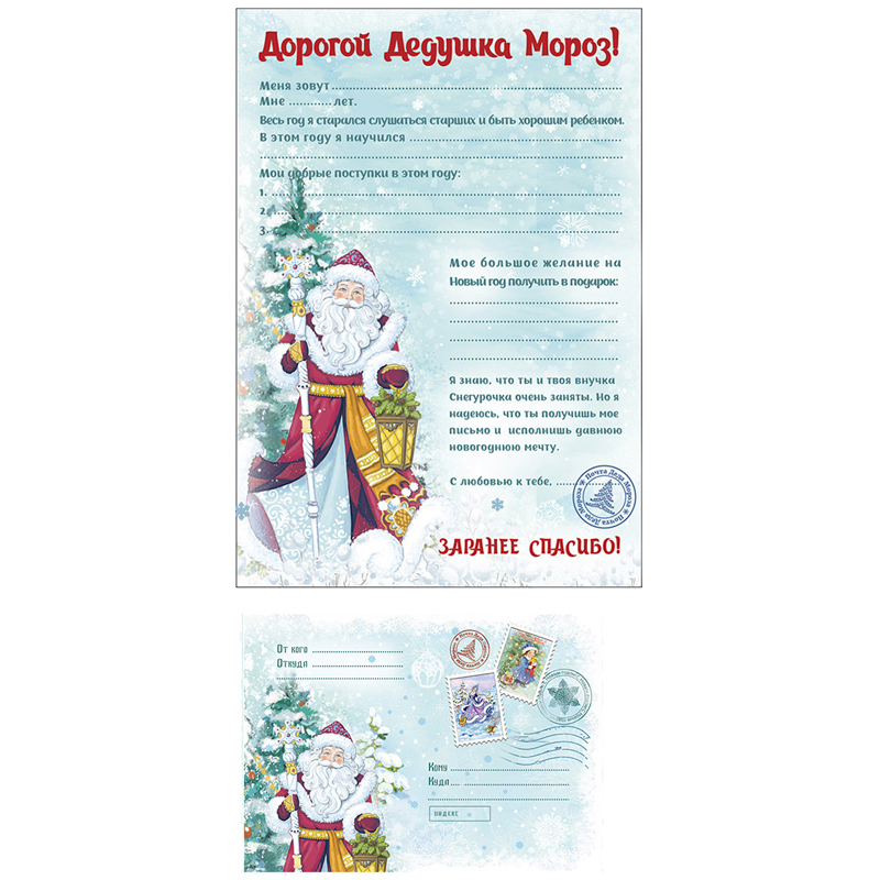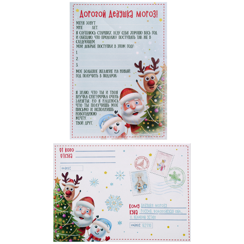 Письмо Деду Морозу с конвертом "Дед Мороз и елка", 29,5*21см