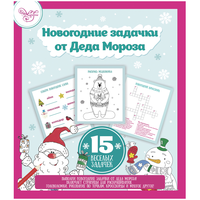Книжка-раскраска с головоломками "Новогодняя", 15л. + восковые мелки 4шт., 28*19см