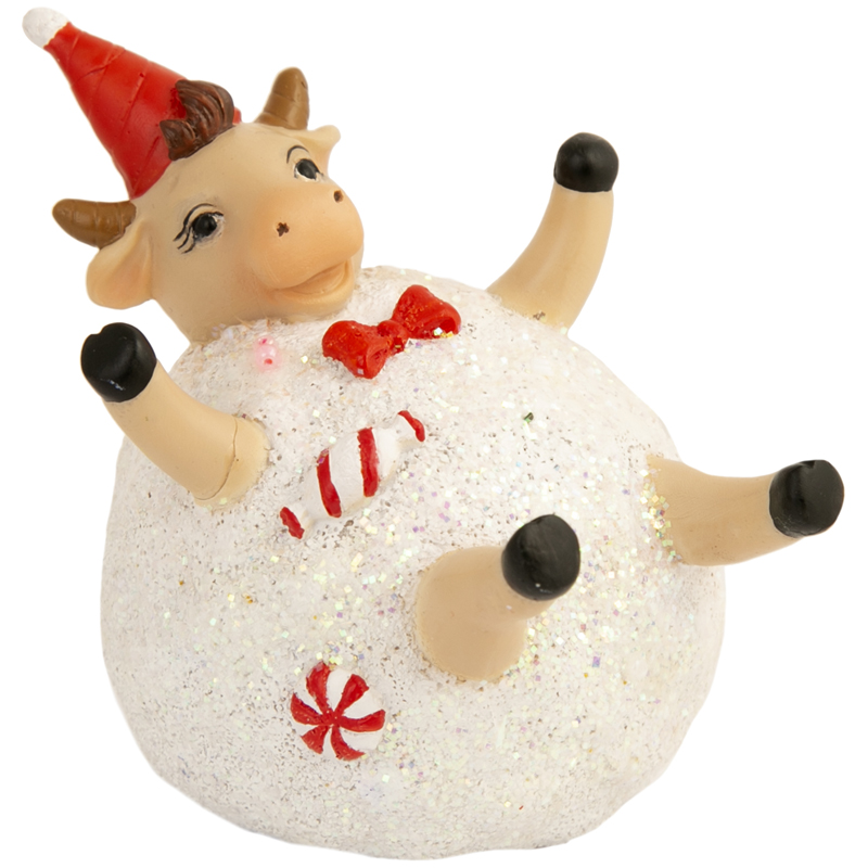 Декоративная фигурка "Бычок в снежке", полирезина, 8*8,5*7см