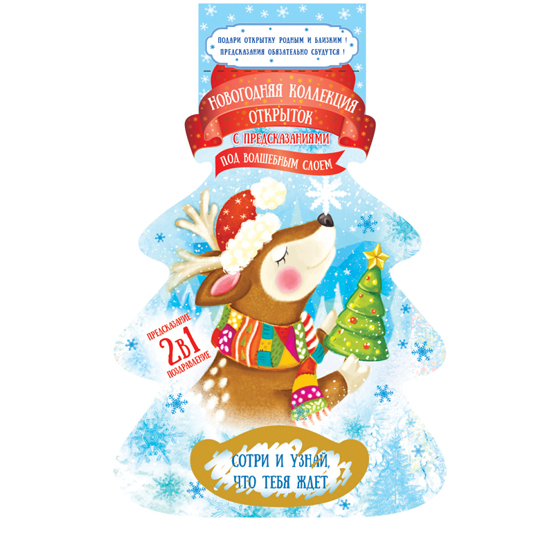 Набор открыток 12шт. в форме новогодней елочки со скретч-слоем с предсказаниями, 17*10,5см