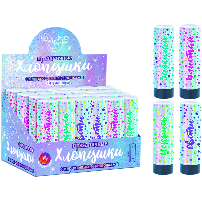 Хлопушка пружинная "Радужная", 15см, разноцветное конфетти