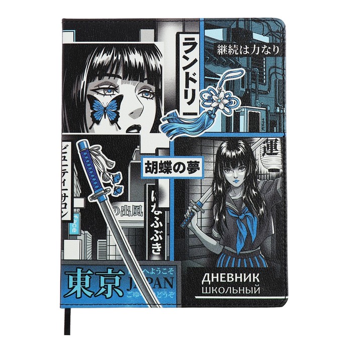 Дневник универсальный 1-11 класс, 48 листов "ДЕВУШКА 2", твёрдая обложка из искусственной кожи, ляссе, универсальная шпаргалка, блок 80 г/м2