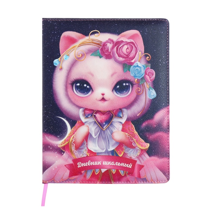 Дневник универсальный 1-11 класс, 48 листов "КОШКА-ПРИНЦЕССА", твёрдая обложка из искусственной кожи, ляссе, универсальная шпаргалка, блок 80 г/м2