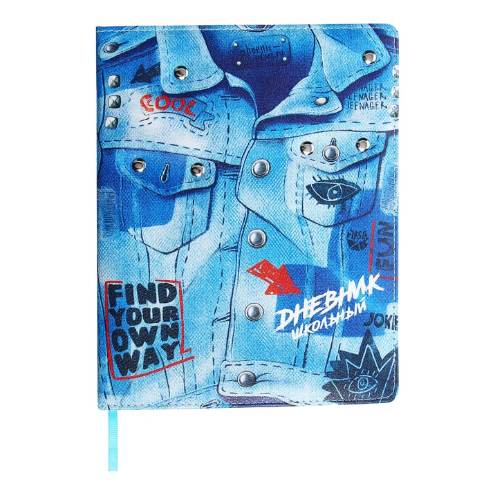 Дневник универсальный 1-11 класс, 48 листов "Джинсовка", твёрдая обложка из искусственной кожи, ляссе