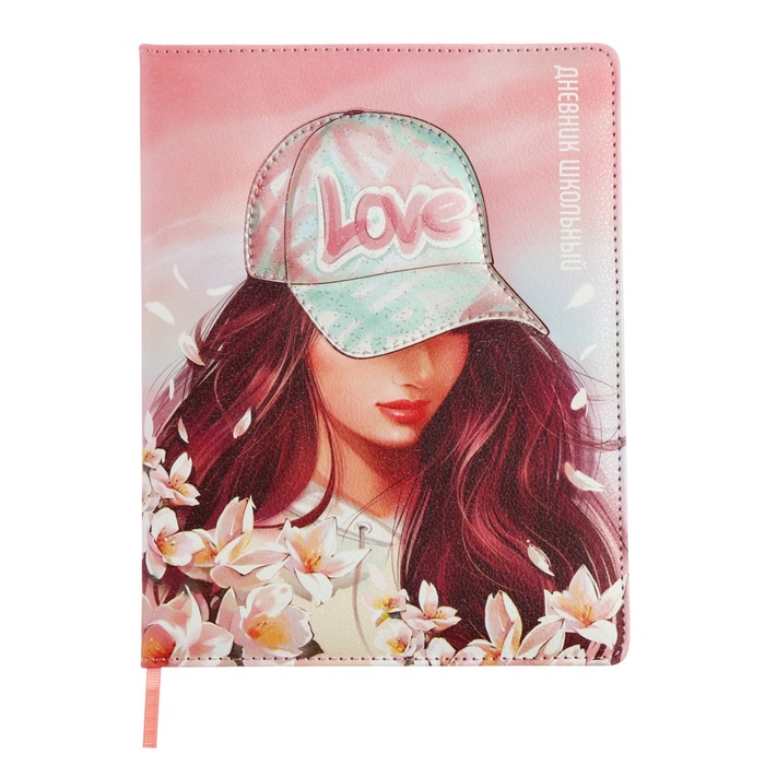 Дневник универсальный 1-11 класс, 48 листов "ДЕВУШКА В КЕПКЕ", твёрдая обложка из искусственной кожи, апликация, ляссе, универсальная шпаргалка, блок 80 г/м2
