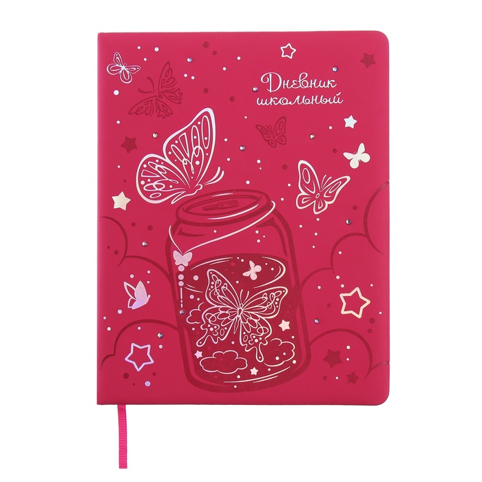 Дневник универсальный 1-11 класс, 48 листов "Волшебные бабочки", твёрдая обложка из искусственной кожи, блинтовое тиснение, стразы, ляссе
