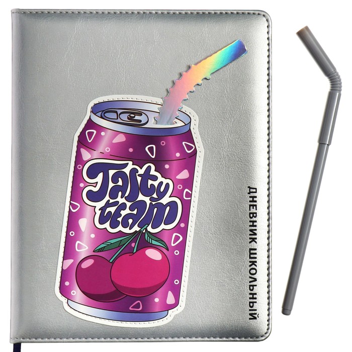 Дневник школьный для 1-11 классов "Вишня", твёрдая обложка с поролоном, искусственная кожа, аппликация, ляссе, 48 листов, ручка в комплекте, блок 70г/м2