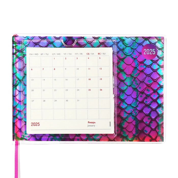 Еженедельник датированный 2025 года, ESCALADA "Змея", 180 х 127 мм, мягкая обложка, ПВХ, 64 листа, блинтовое тиснение, блок 70, малиновый