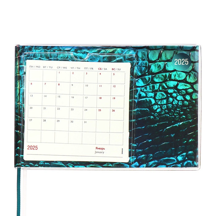 Еженедельник датированный 2025 года, ESCALADA "Змея", 180 х 127 мм, мягкая обложка, ПВХ, 64 листа, блинтовое тиснение, блок 70, зеленый