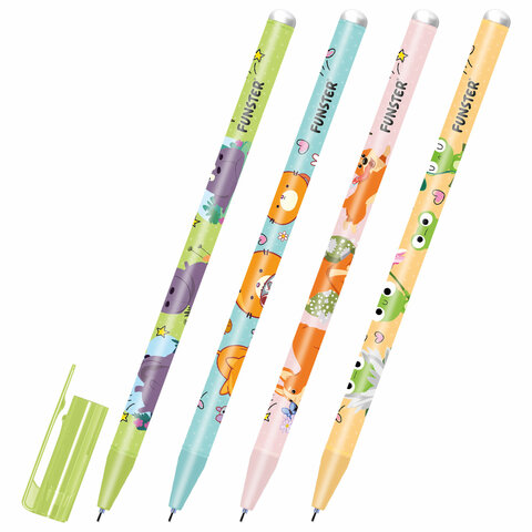Ручки гелевые стираемые FUNSTER "CUTE ANIMALS", СИНИЕ, НАБОР 4 ШТ., 50 стержней, 1 ластик, игольчатый узел 0,5 мм, линия 0,35 мм, 144437