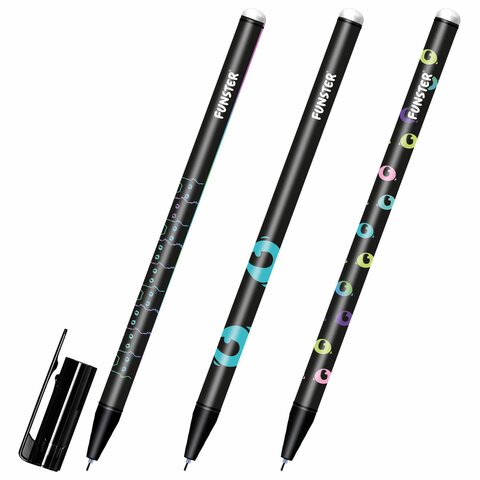 Ручка стираемая гелевая с принтом FUNSTER "BLACK CAT", СИНЯЯ, корпус ассорти, игольчатый наконечник 0,5 мм, линия 0,35 мм, 144415