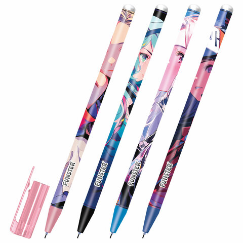Ручка стираемая гелевая с принтом FUNSTER "MANGA ANIME", СИНЯЯ, корпус ассорти, игольчатый наконечник 0,5 мм, линия 0,35 мм, 144413