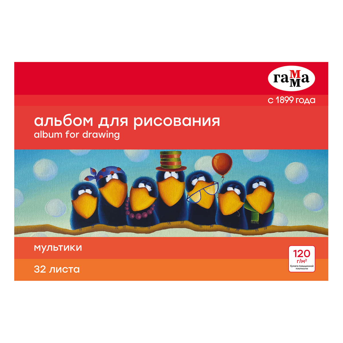 Альбом для рисования 32л., А4, на склейке Гамма "Мультики", 120г/м2