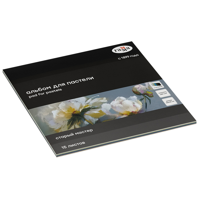 Альбом для пастели, 15л., 200*200мм, на склейке Гамма "Старый Мастер", 160г/м2, ячеистая фактура, 5 цветов, холодные тона