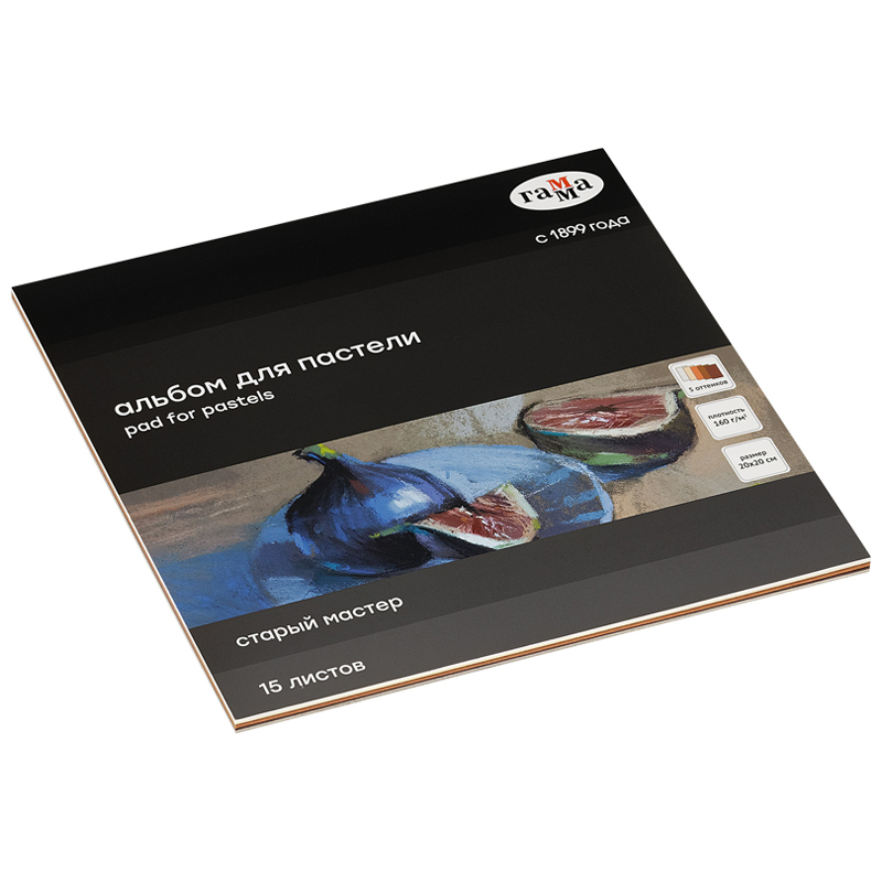 Альбом для пастели, 15л., 200*200мм, на склейке Гамма "Старый Мастер", 160г/м2, ячеистая фактура, 5 цветов, теплые тона