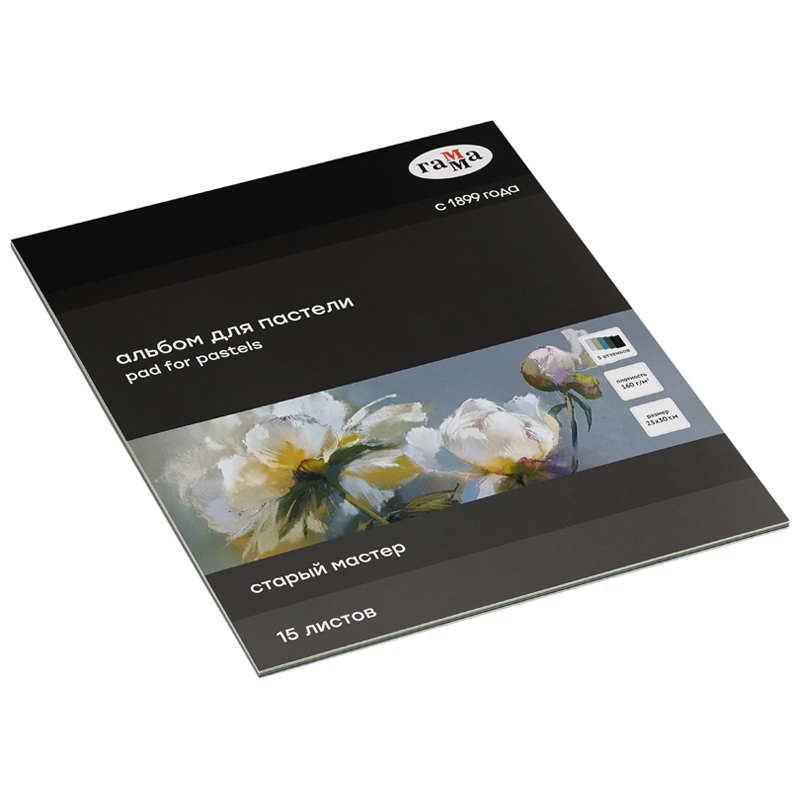 Альбом для пастели, 15л., 250*300мм, на склейке Гамма "Старый Мастер", 160г/м2, ячеистая фактура, 5 цветов, холодные тона
