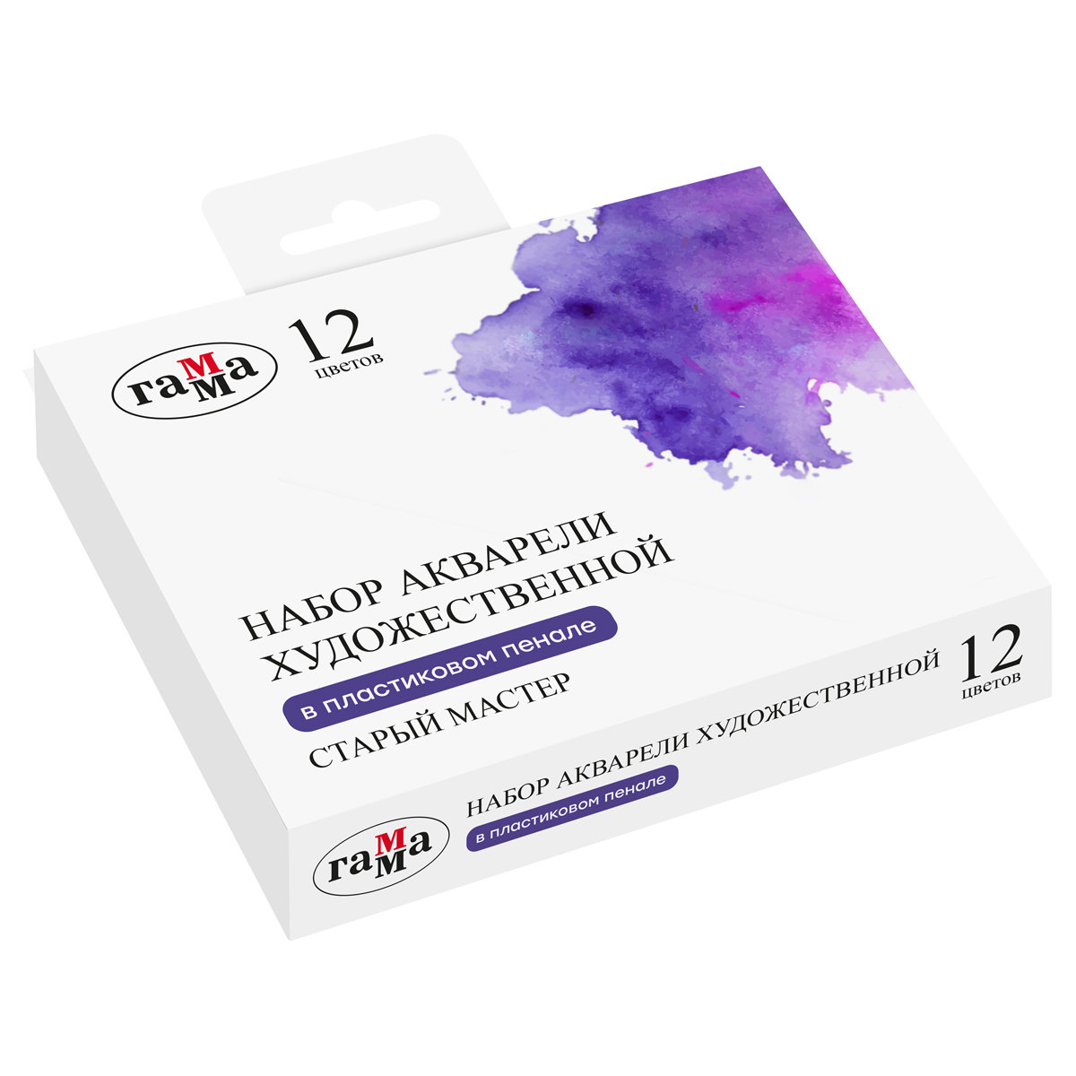 Акварель художественная Гамма "Старый Мастер", 12цв*2,6мл, кюветы, пластик.пенал