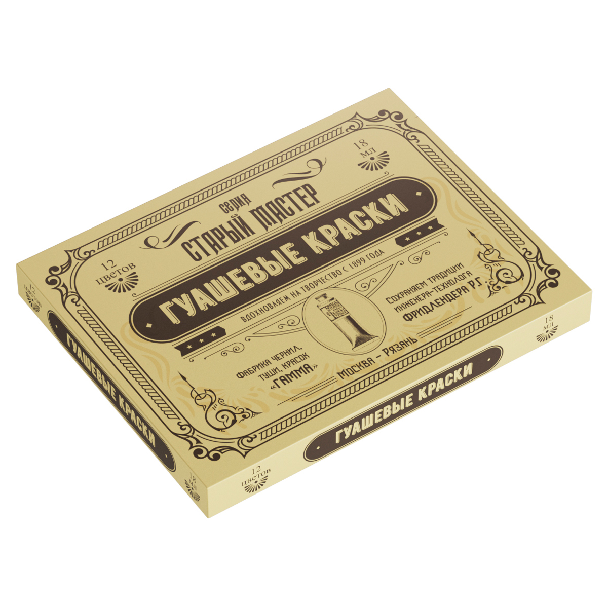 Гуашь художественная Гамма "Старый мастер" "Юбилейная", 12 цветов, 18 мл/туба, картон.упак.