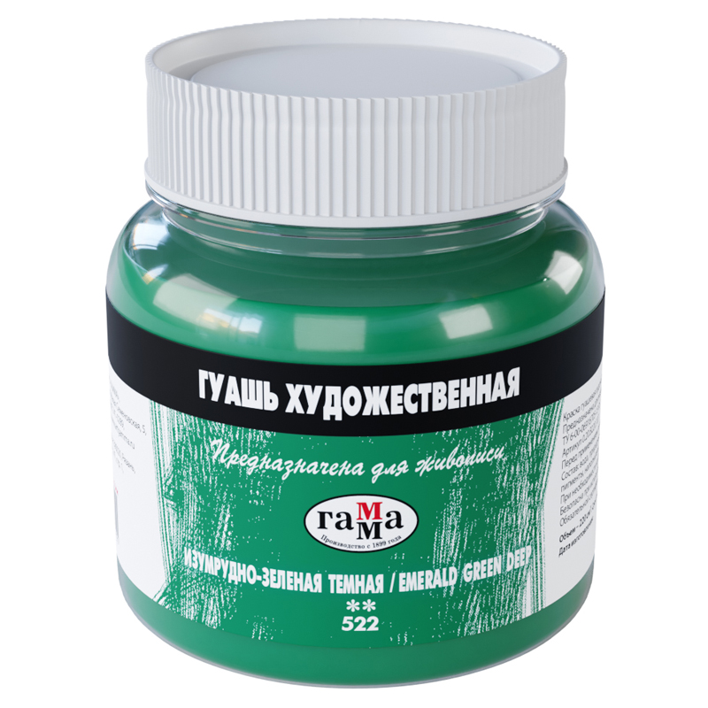 Гуашь художественная Гамма, изумрудно-зеленая темная, 220мл