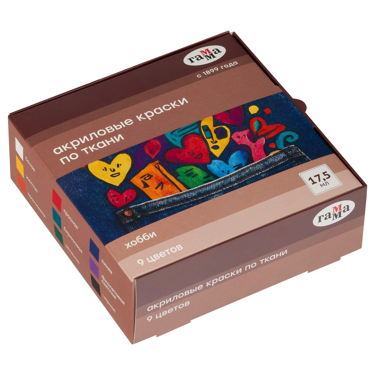 Краски по ткани акриловые Гамма "Хобби", 9цв, 17,5мл, картон.упак.