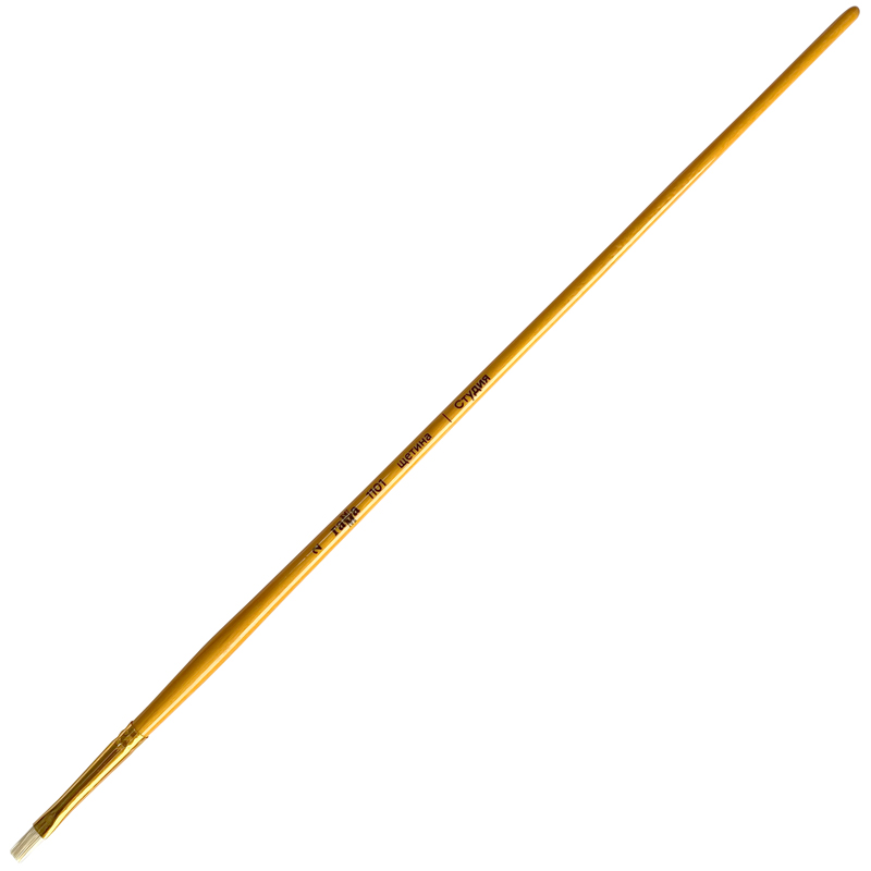 Кисть художественная щетина Гамма "Студия", плоская №1, длинная ручка