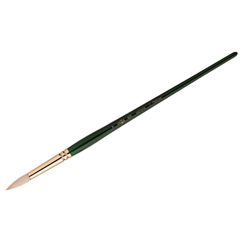Кисть художественная коза Гамма "Aries", круглая №8, французское крепление, короткая ручка