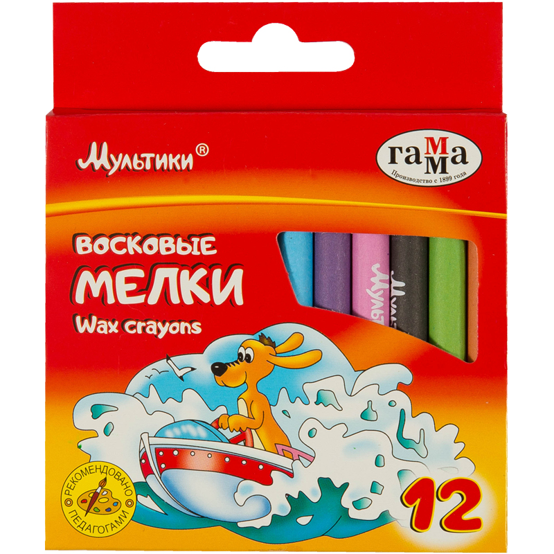 Мелки восковые Гамма "Мультики", 12цв., круглые, картон, европодвес