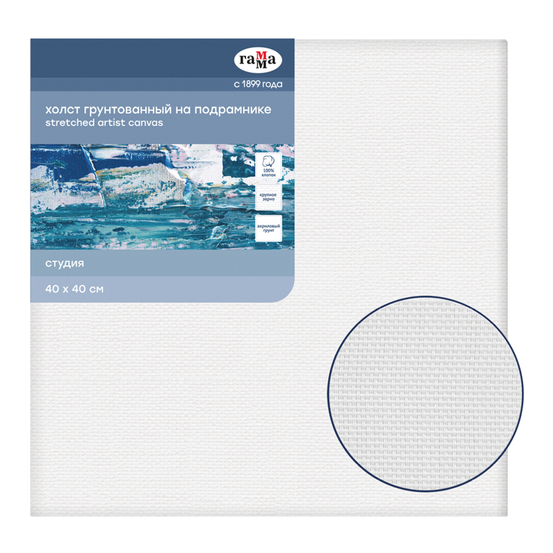 Холст на подрамнике Гамма "Студия", 40*40см, 100% хлопок, 400г/м2, крупное зерно