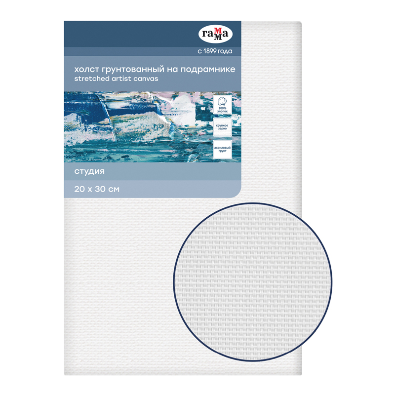 Холст на подрамнике Гамма "Студия", 20*30см, 100% хлопок, 400г/м2, крупное зерно