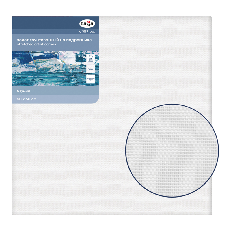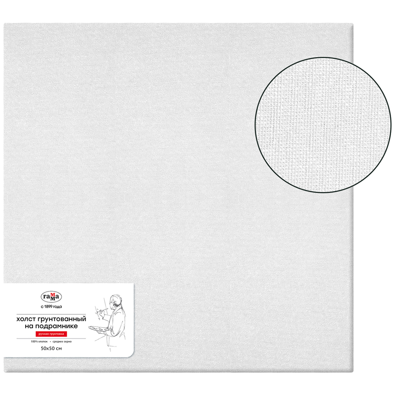 Холст на подрамнике Гамма, 50*50см, 100% хлопок, среднее зерно, масляный грунт, ручная грунтовка