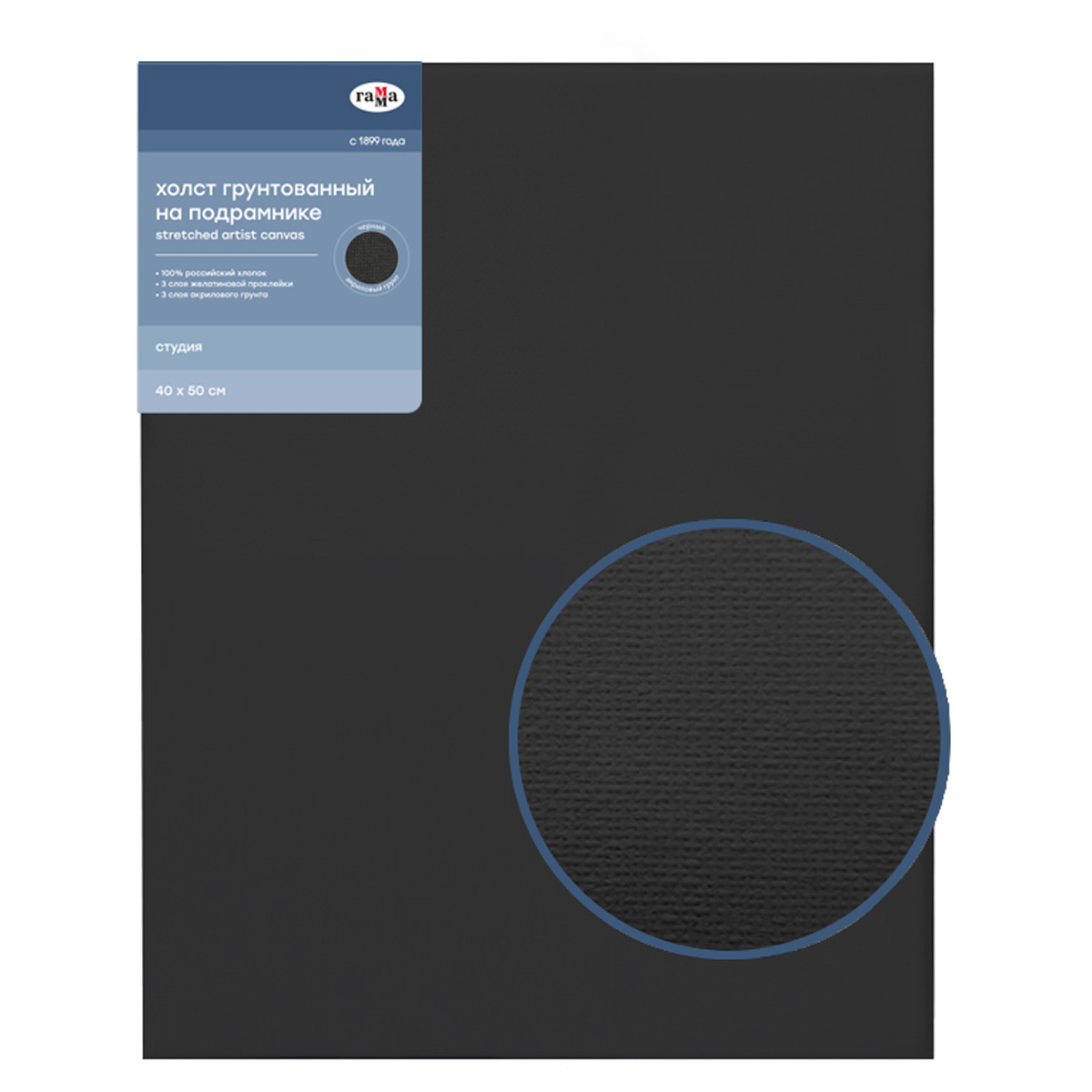 Холст на подрамнике Гамма "Студия", 40*50см, цвет черный, 100% российский хлопок, среднее зерно