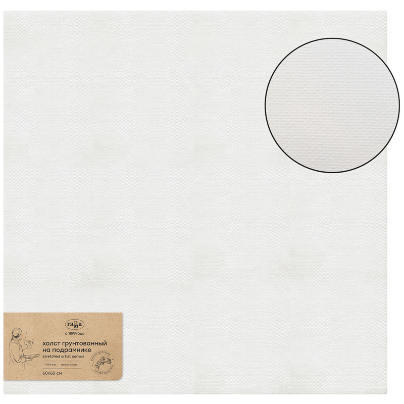 Холст на подрамнике Гамма "Старый мастер", 60*60см, 100% лен, мелкое зерно, масляный грунт, ручная грунтовка