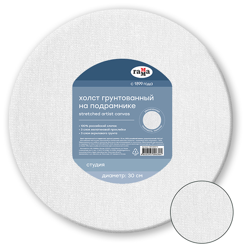 Холст на подрамнике Гамма "Студия", круглый, диаметр 30см, 100% российский хлопок, среднее зерно