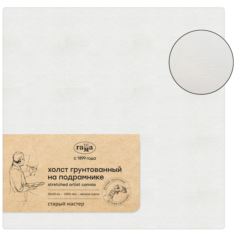 Холст на подрамнике Гамма "Старый мастер", 30*30см, 100% лен, мелкое зерно, масляный грунт ручная грунтовка