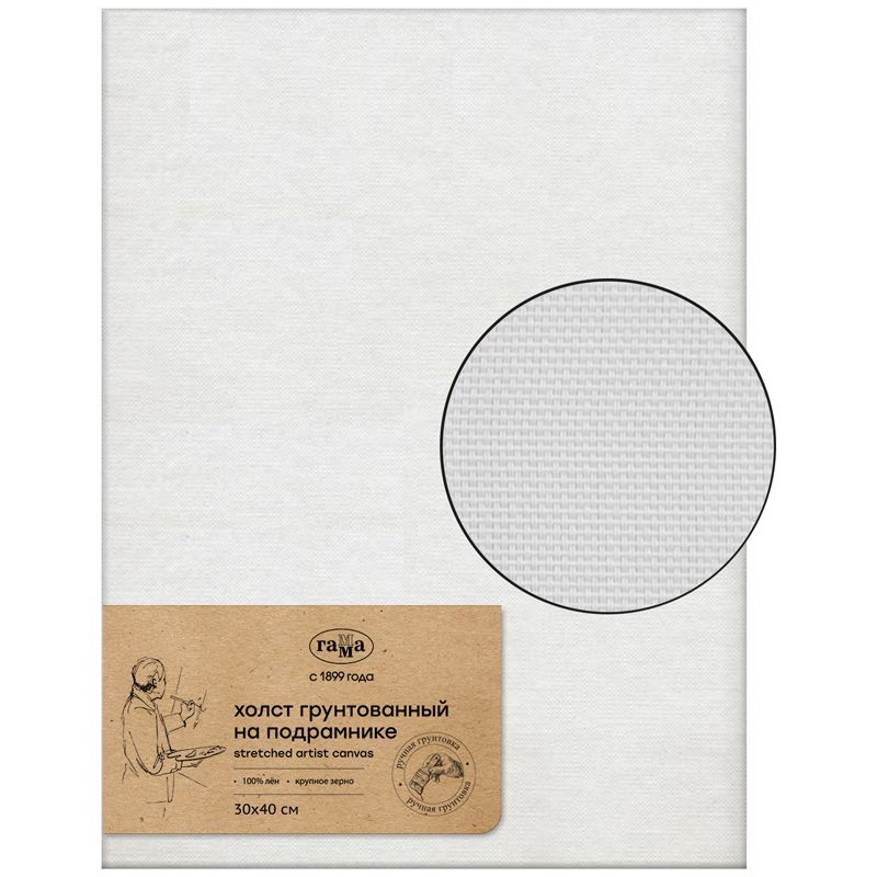 Холст на подрамнике Гамма "Старый мастер", 30*40см, 100% лен, крупное зерно, масляный грунт, ручная грунтовка