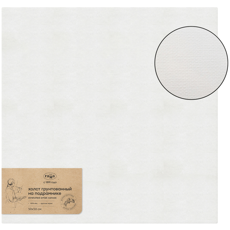 Холст на подрамнике Гамма "Старый мастер", 50*50см, 100% лен, мелкое зерно, масляный грунт ручная грунтовка