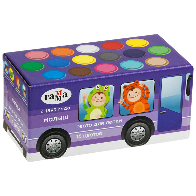 Тесто для лепки Гамма "Малыш. Автобус", 16 цветов, 960г, в подарочной коробке