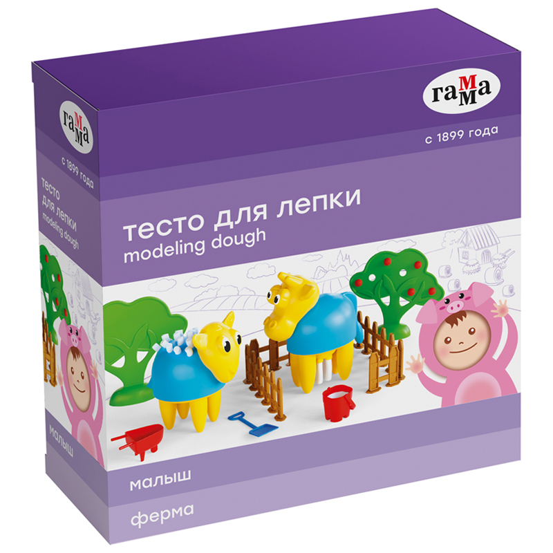 Тесто для лепки Гамма "Малыш. Ферма", 04 цвета, 240г, набор с аксессуарами