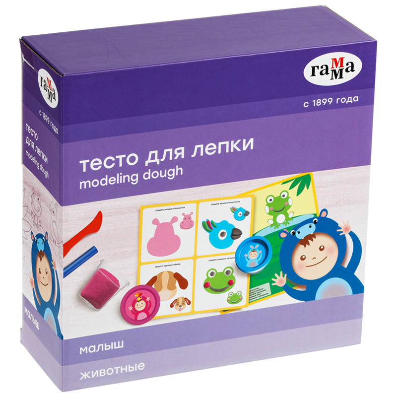 Тесто для лепки Гамма "Малыш", 05 цветов, 300г, карточка с животными, в подарочной коробке
