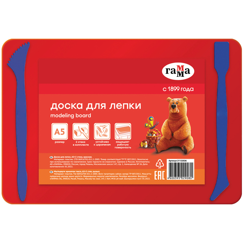 Доска для лепки Гамма, А4+2 стека, пластик, красный