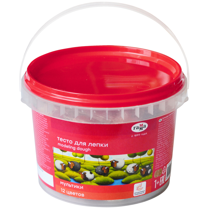 Тесто для лепки Гамма "Мультики", 12 цветов*25г, пластиковая банка с ручкой