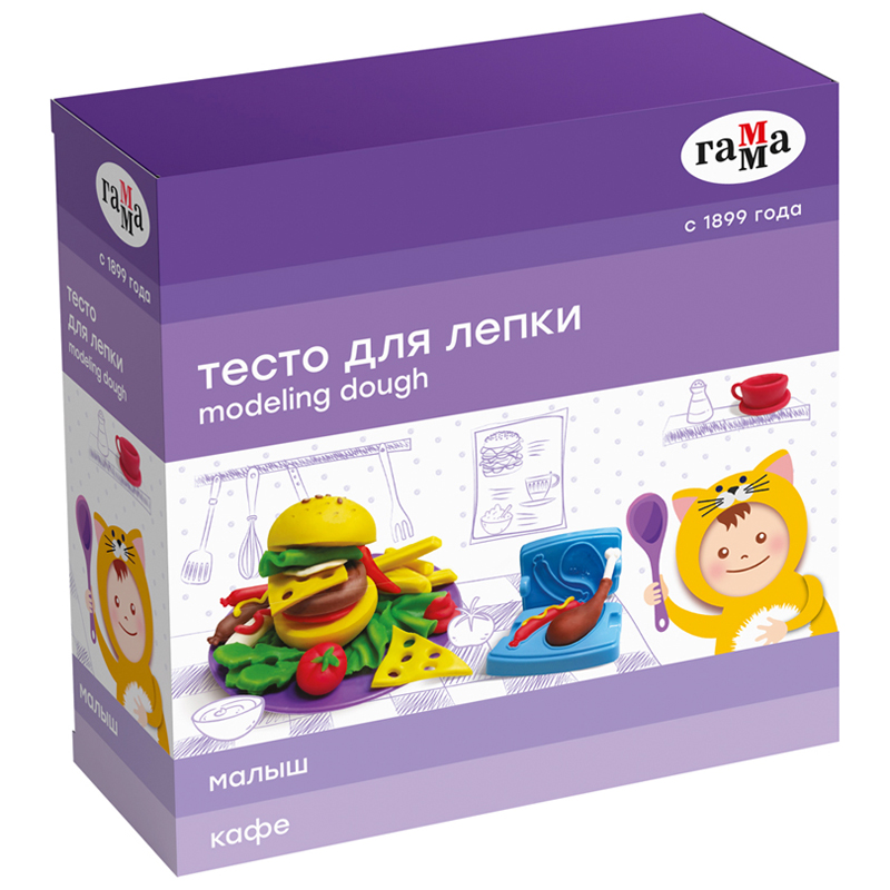 Тесто для лепки Гамма "Малыш. Кафе", 05 цветов, 300г, набор с аксессуарами