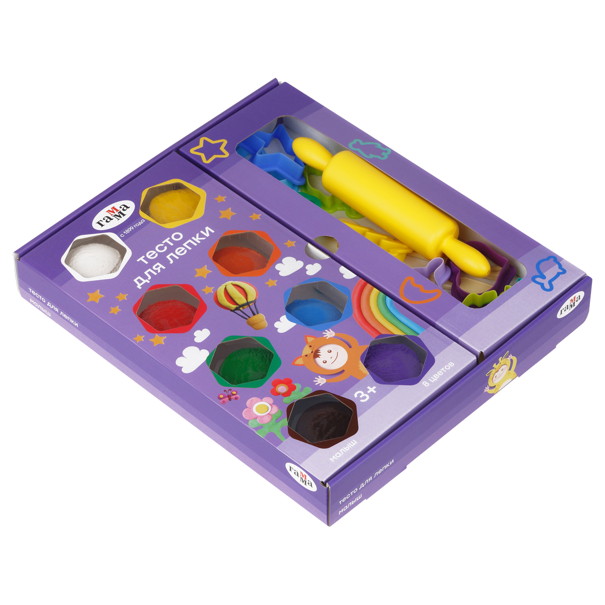 Тесто для лепки Гамма "Малыш", 8 цветов, 480г, формочки, скалка, стек, картоннная упаковка new