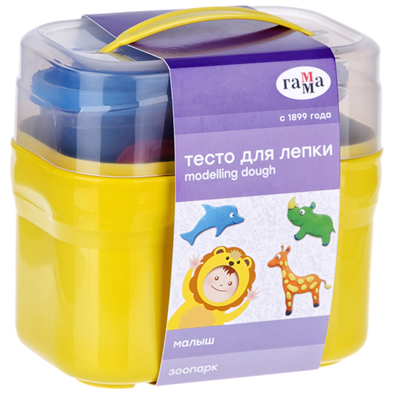 Тесто для лепки Гамма "Малыш. Зоопарк", 04 цвета, 240г, 5 формочек, пластиковый кейс