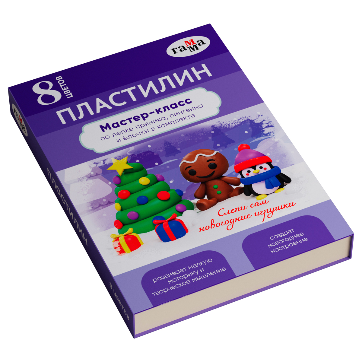 Пластилин Гамма "Юный художник" новогодний с МК, 08 цветов, 112г, со стеком, картон. упаковка